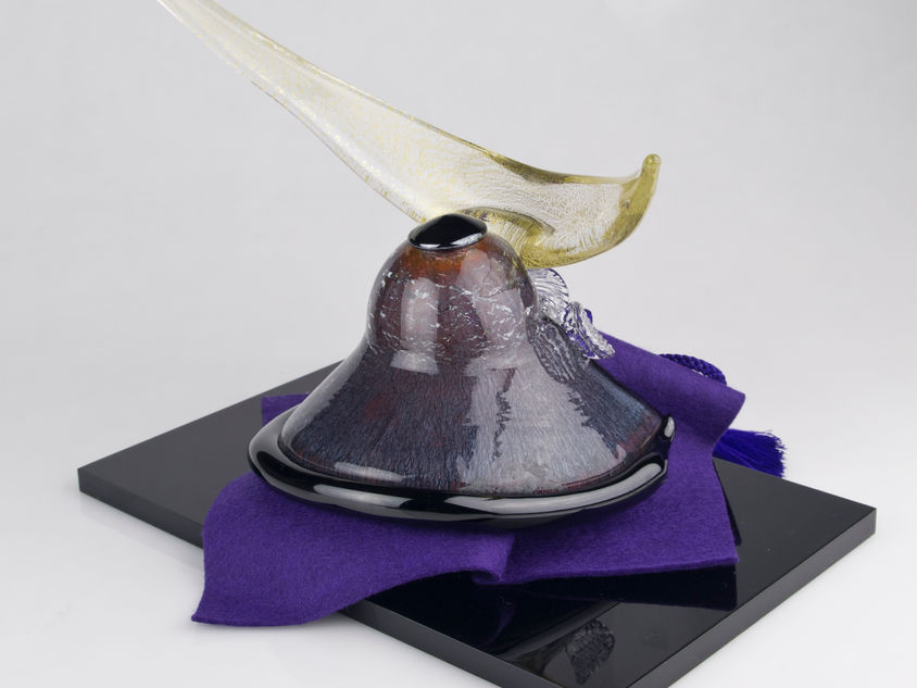 ガラス、金箔、真鍮箔、木、フェルト、リボン、厚紙 / Soft Glass, Gold Leaf, Brass Leaf, Wood, Felt, Ribbon, Cardboard
